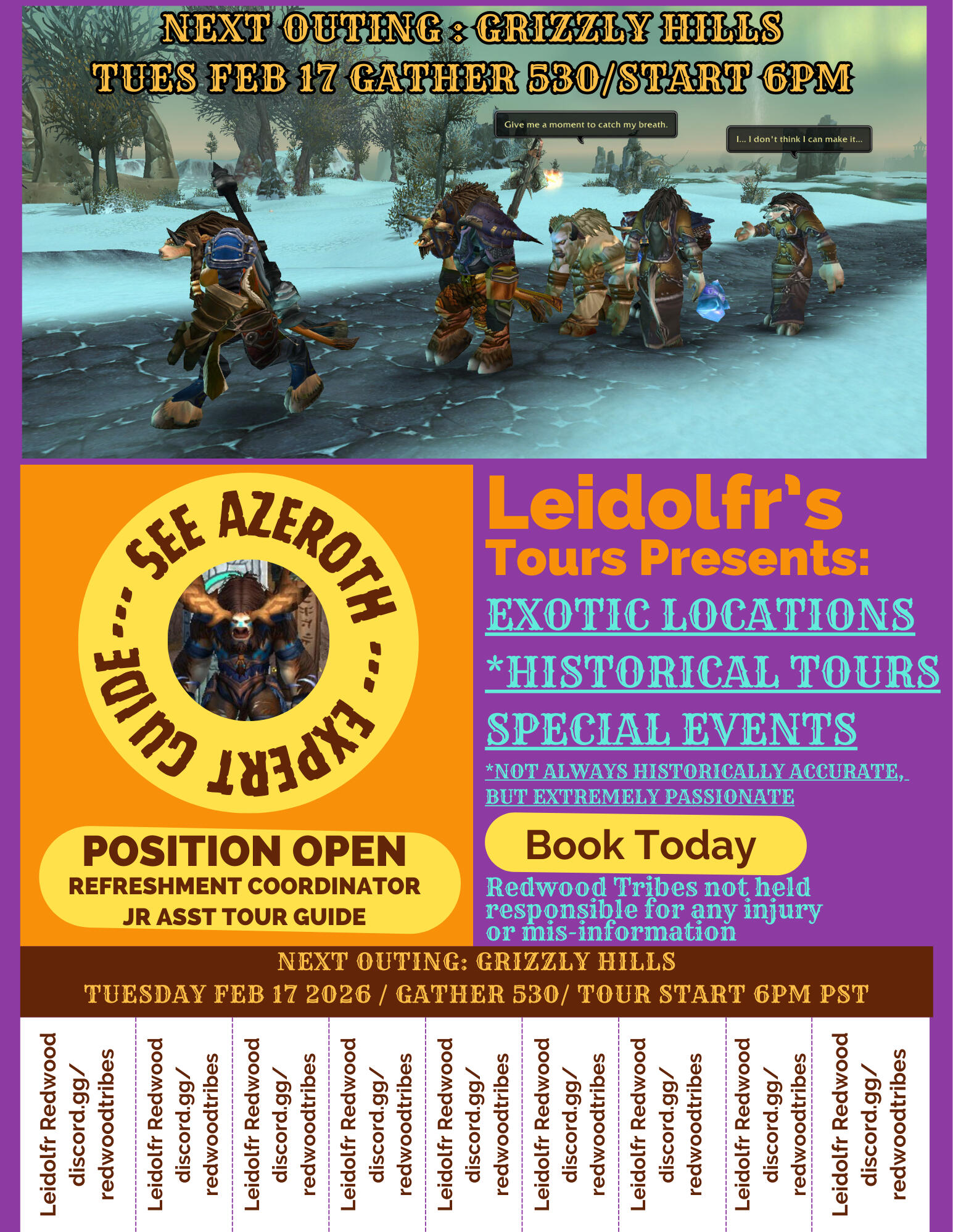 Or attend any number of events run by some of our Tribesmembers, so keep checking back as events are updated, or join our discord at https://discord.gg/redwootribes